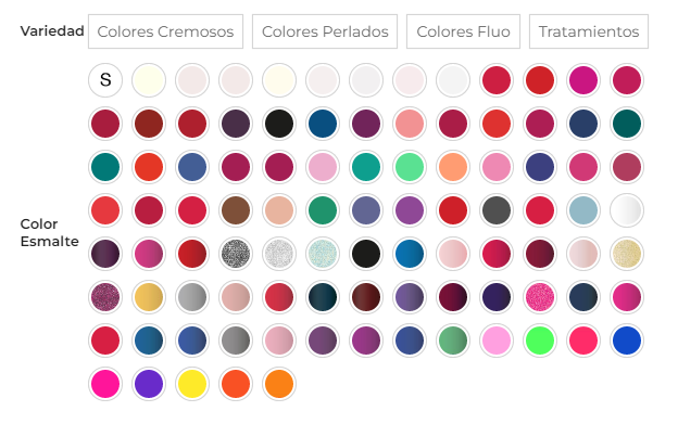 | Variedad | Colores Cremosos, Colores Perlados, Colores Fluo, Tratamientos |